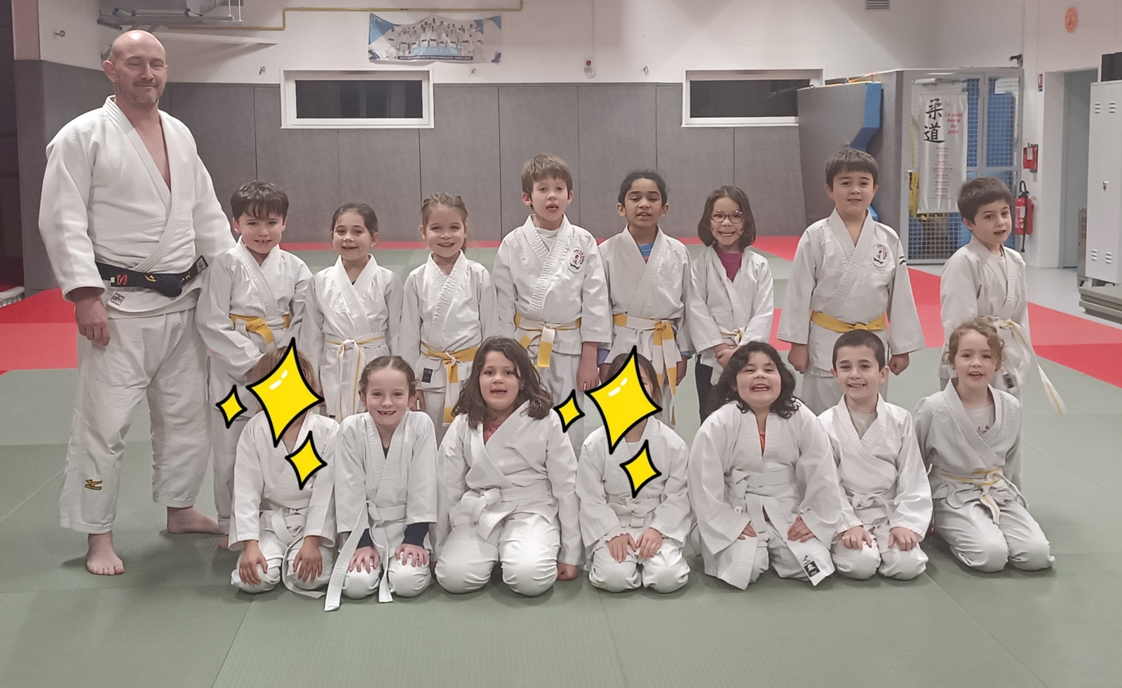 Enfants de 2018-2019. Ils sont aux nombres de 15 judokas. Cours de 18h45-19h45